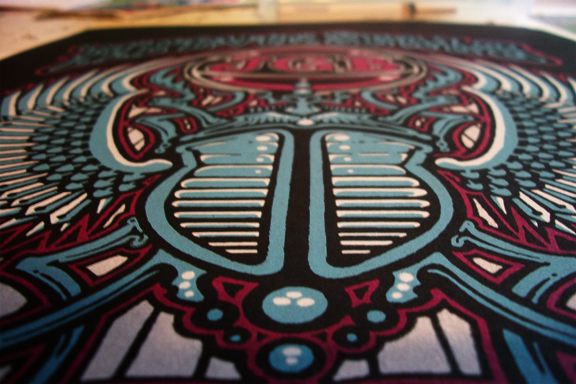 3 color screenprinted poster with Metallic inks...